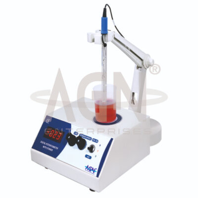 Digital Potentiometer for Redox Potential (ORP) measurement, featuring a 3½-digit LED display with a range of 0 to ±1999 mV, 1 mV resolution, and ±1% accuracy. Operates on 230 V ±10% AC and comes complete with ORP electrodes, electrode stand, and dust cover for reliable laboratory use.