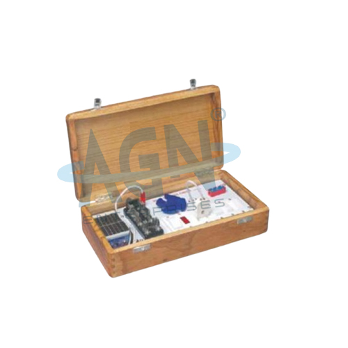 A complete demonstrative unit with schematic diagram that demonstrates how the energy can be saved using solar energy and also demonstrate that how connections / wiring is made in our houses. the unit is operating on low voltage Dc. All the components fuse, indicator, on/off switches, fan, bell, lamp are fitted on Bakelite sheet. A knife switch is provided to changeover the Solar Panel voltage orc (battery voltage).